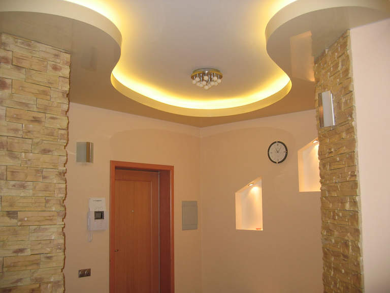 В этом случае переход между зонами будет органичным и естественным. Такой прием подходит как для простого полотна, так и для сложных многоуровневых конструкций.