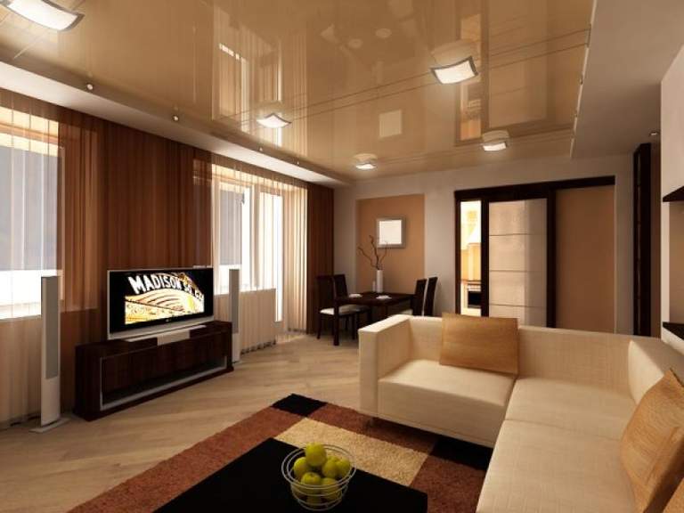 Бежевый потолок в интерьере