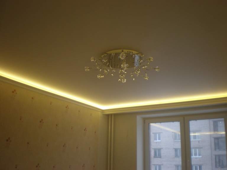 Хотите чего-то более оригинального? Как на счет скрытой подсветки? Пока вы ее не активируете, ваша комната будет находиться про простым матовым бежевым потолком.