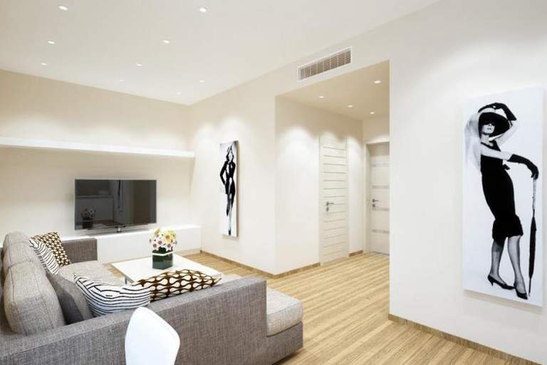 Матовый натяжной потолок смотрится так, будто, это просто идеально пошпаклёванный, ровный и покрашенный потолок. Он выглядит, как слегка бархатный, отчего создаётся ощущение уюта и домашнего тепла.