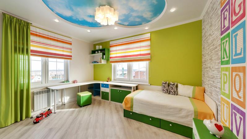 А вот в детской, точно нужны матовые потолки. Если ребёнок маленький, то он может испугаться бликов в ночи, которые могут возникнуть из-за обычного фонарика в зарядном устройстве.