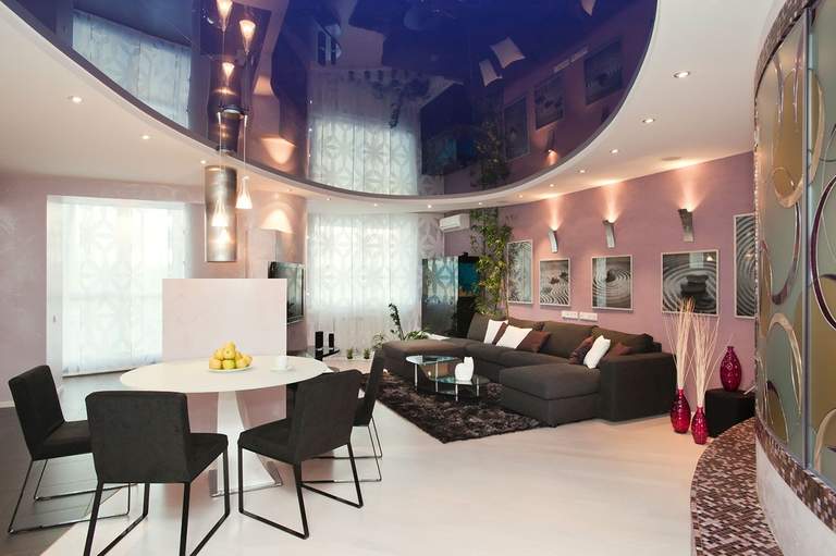 Яркий эпатажный хай-тек потолок или сдержанная классика — все зависит от вашего вкуса. Есть несколько вариантов, которые считаются эталонными и выглядят всегда модно.
