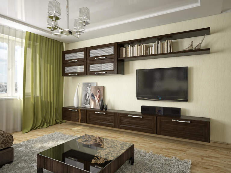 Чаще всего глянцевые вставки используют в гостиных, спальнях, детских — комнатах, где нет перепадов температур и повышенной влажности.