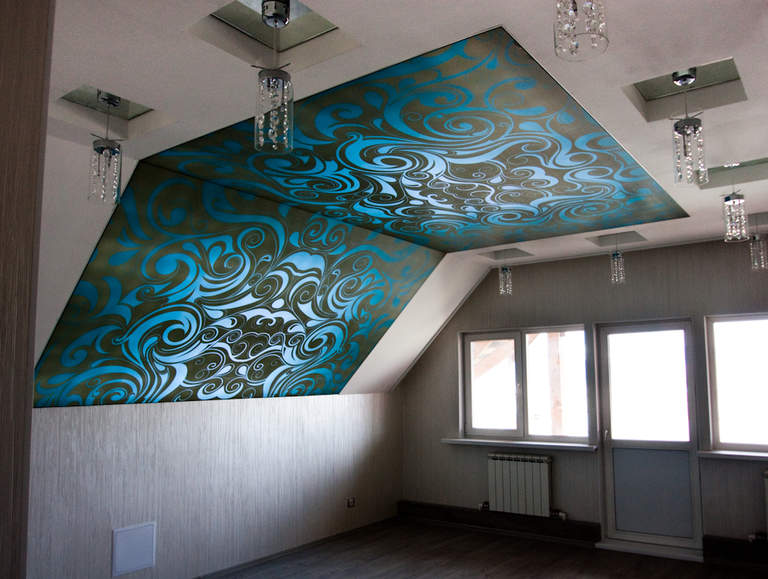 Матовые натяжные потолки с фотопечатью лучше заказывать в профессиональном дизайнерском агентстве: иначе вы рискуете получить интерьер, который будет далек от ваших фантазий. Малейший недостаток на принте бросится в глаза и испортит все впечатление. Глянец в этом плане куда менее капризен: мелкие недочеты сгладят переливы света.