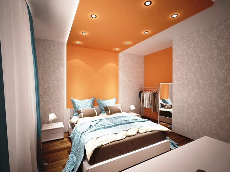 Кроме того, необходимо учитывать габариты помещения: натяжное полотно требует определенного пространства. Неважно, где оно расположено — на стене или на потолке, вам придется уделить ему 5 — 10 сантиметров. Поэтому в маленьких комнатах от подобного оформления придется отказаться.