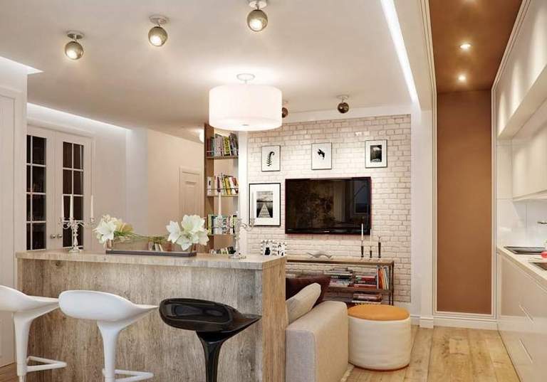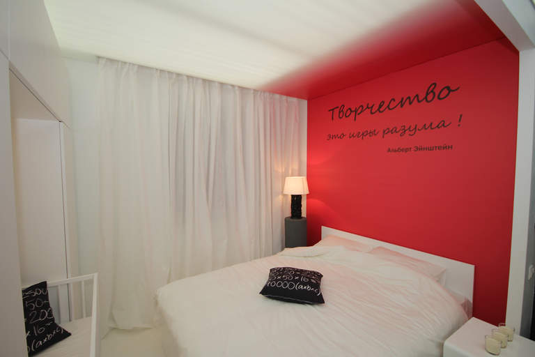 Попробуйте поиграть на контрастах — выбирайте сочные, яркие оттенки на белом фоне. В этом случае даже небольшая комната смотрится объемнее, чем на самом деле.