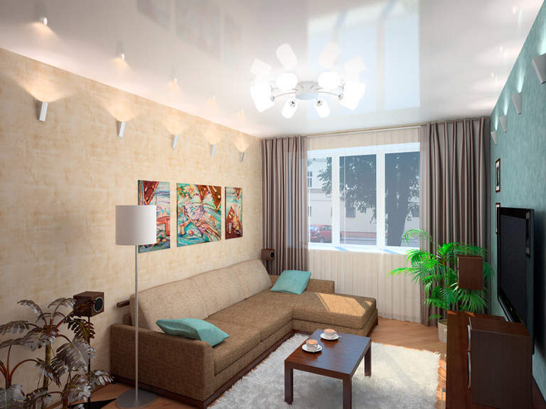 Точно так же новая мебель или техника, ваши любимые предметы – абажуры, картины и т.д. в гостиной или спальне помогут вам подобрать наилучшую расцветку для потолка.