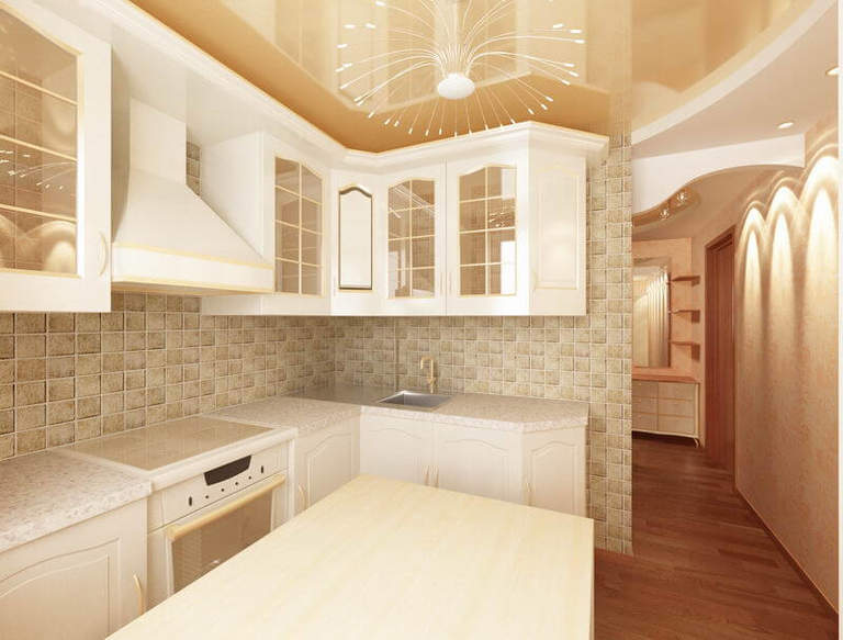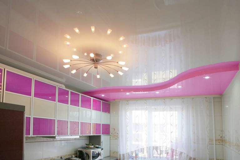 Важный момент! Если вы хотите ставить пленочный потолок на кухне, наилучшими цветами будут очень светлые оттенки серого или песочного. Нет, мы не отговариваем вас от королевского белого цвета. Просто с учетом особенностей этого помещения необходимость уборки белоснежного потолка будет возникать гораздо чаще.