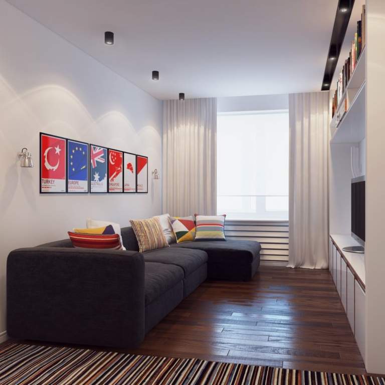 Комната в 18 метров — достаточно большое пространство, дающее простор дизайнерской фантазии. Однако чаще такие залы встречаются в советских квартирах типовой застройки, поэтому есть проблема — низкие стены.