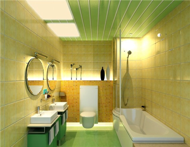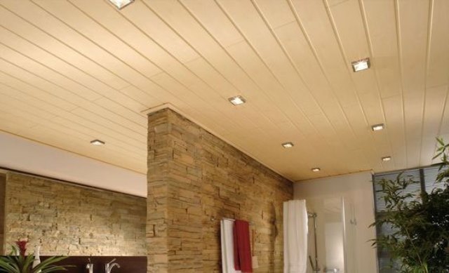Универсальность – еще один плюс пластика. Потолок из таких реек можно собрать везде. Он не боится воды, легко моется и не требует к себе много внимания. Прослужит такая конструкция многие годы, если специально ее не повреждать. При этом, выглядят стеновые панели из ПВХ, установленные на потолок, очень привлекательно и на фото ниже показан пример подобной отделки.