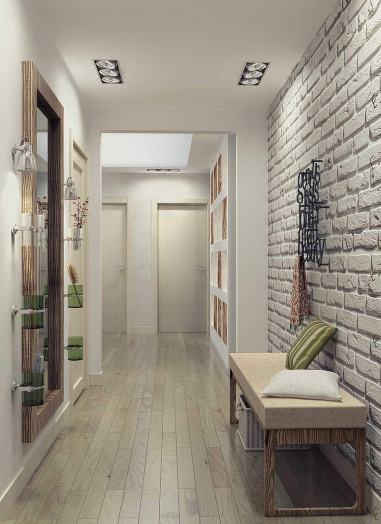Прихожая, оформленная в таком стиле, считается едва ли классикой дизайна: возможно, вы помните модные в девяностые обои “в кирпичик”, которые считались эталоном?