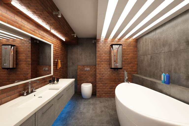 Вам кажется, что натяжное полотно будет плохо сочетаться с кирпичом и металлическими элементами? Это не так.