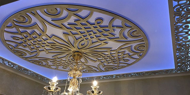 Любой из перечисленных видов декора выглядит очень красиво. При этом, можно смонтировать не слишком дорогостоящий резной потолок из фанеры или МДФ, уменьшив стоимость ремонта а также оснастив композицию встроенной подсветкой.