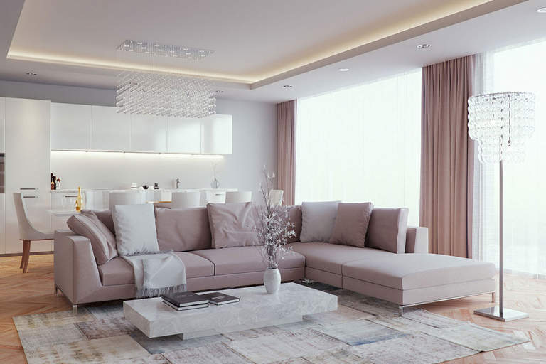 Подобных эффектов поможет добиться и потолочный молдинг, расположенный над люстрой. Угловое освещение подчеркнет рельефность потолка, а в комбинации со светодиодной подсветкой наполнит вашу гостиную или спальню таинственностью и романтикой.